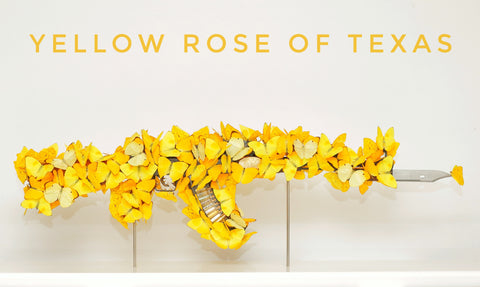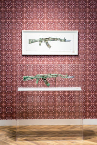 Bran Symondson is a conceptual artist and photographer inspired by his experiences while serving in the Special Forces in Afghanistan. Bran turns the most prolific weapon in the world – the AK47 – into engaging works of art, masterfully embellished with dollar bills, iconography and butterflies. These works rest on a simple premise: take something of fear and loathing and turn it into something of beauty and intrigue.